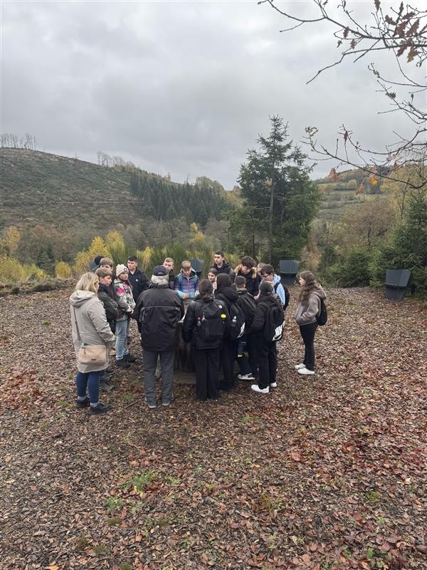 Olpe/Rhonard. Für die Schülerinnen und Schüler des 7. Jahrgangs hieß es Ende Oktober: raus aus dem Klassenzimmer, rein in die Heimatgeschichte! Im Rahmen einer fächerübergreifenden Exkursion in das Gebiet Rhonard, erlebten die Jugendlichen den ehemaligen Bergbau hautnah. Die thematisch geführte Wanderung auf dem Grubenkunstweg verband die Fächer Naturwissenschaften (NW) mit dem Fokus auf Stoffe und deren Eigenschaften sowie Metalle ideal mit der Heimatkunde.
